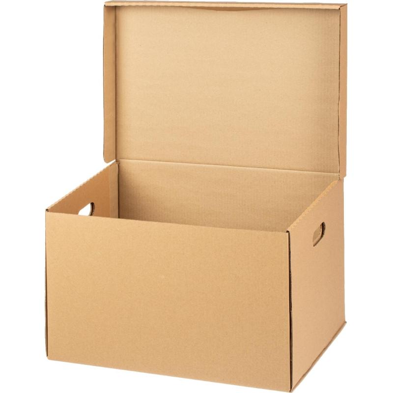 Короб архивный 480x325x295 мм Т-24 Attache Делопроизводство из гофрокартона<br><br>Короб архивный предназначен для хранения и перевозки документов в накопителях или папках-регистраторах. С откидной крышкой. По бокам отверстия для удобства переноски. Короб архивный способен выдерживать нагрузку до 30 кг. Внутренние размеры - 480x325x295 мм. Внешние размеры - 500x340x300 мм. Поставляется в разобранном виде. Материал - гофрокартон Т-24. Цвет - бурый. Производитель - Россия. Папки в комплект не входят. Гофрокартон - экологически чистый и пригодный для переработки материал. Товар продаётся поштучно, стоимость составляет за 1 штуку.