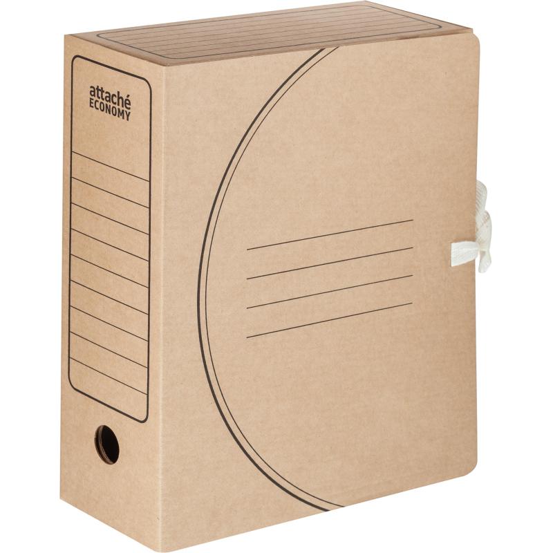 Короб архивный гофрокартон Attache (Attache Economy) на 2-х завязках 245×100×318 мм бурый до 1000 листов (5 штук в упаковке)<br><br>Архивная коробка Attache (Attache Economy) формата А4 выполнена из гофрокартона бурого цвета. В закрытом состоянии фиксируется с помощью двух завязок. Ширина корешка — 100 мм. Предусмотрены поля для надписей. Вместимость — до 1000 листов стандартной плотности. Круглые отверстия на корешках предназначены для удобного захвата папки как в вертикальном, так и в горизонтальном положении. Поставляется в разобранном виде. В упаковке 5 штук. Внутренний размер — 316×244×97 мм. Внешний размер — 318×245×100 мм. Гофрокартон Т21 — экологически чистый и пригодный для переработки материал.<br><br>В рамках ребрендинга производится перевод данного артикула из ТМ Attache Economy в ТМ Attache с сохранением всех потребительских свойств товара. Во время переходного периода допускается поставка данной продукции в двух вариантах дизайна упаковки.