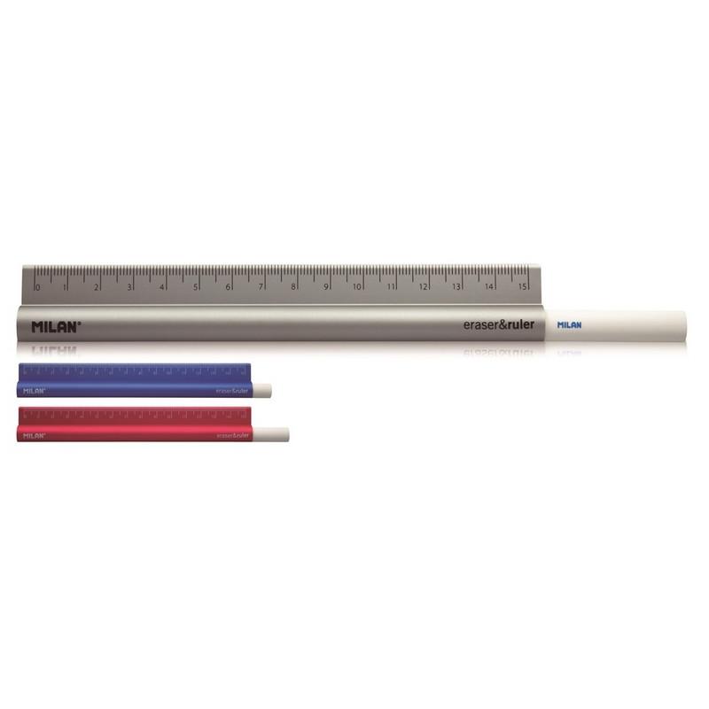 Линейка Milan 15 см металлическая в ассортименте с ластиком <br><br>Линейка является незаменимым помощником при чертежных работах в образовательных учреждениях и офисах, а также дома.<br>Линейка Milan 15 см. <br>Выполнена из металла. <br>Ширина линейки: 2.5 см.<br>Деления наносятся с использованием специальных чернил для оптимальной стойкости. Л<br>егко читать: наглядные индикаторы.<br>Цвета в ассортименте.<br><br>Внимание! Товар поставляется в нескольких вариантах цвета/дизайна (без возможности выбора).