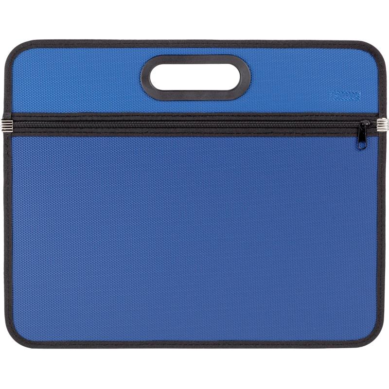 Папка-портфель пластиковая Комус А4+ синяя (39×27 см, 1 отделение)<br><br>Папка-портфель предназначена для хранения и транспортировки документов, бумаг и мелких предметов. Подходит для использования школьниками, студентами и офисными работниками. Формат A4+ позволяет размещать как стандартные листы, так и более объёмные материалы.<br><br>Изделие изготовлено из прочного пластика толщиной 0.9 мм. Поверхность имеет тиснение «бисер», устойчивое к царапинам и загрязнениям. Размер папки составляет 39×27×6 см. Модель оснащена одним отделением и застёгивается на молнию. Дополнительно предусмотрен внешний карман во всю длину. Удобные верёвочные ручки обеспечивают комфорт при переноске. Цвет — синий.