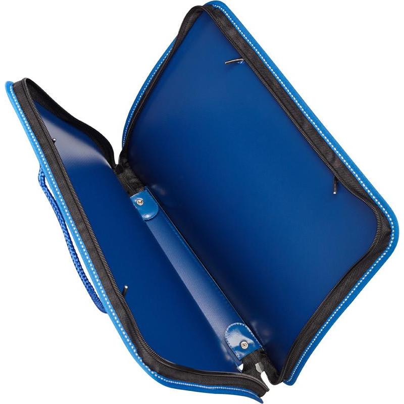 <p>Папка-портфель изготовлена из плотного пластика, формат А4, размер 270×350×42 мм, цвет синий. Для удобства транспортировки оснащена двумя ручками-шнурами. Молния обеспечивает удобное и надежное закрывание папки с трех сторон. Используется для хранения и переноски документов.</p>
