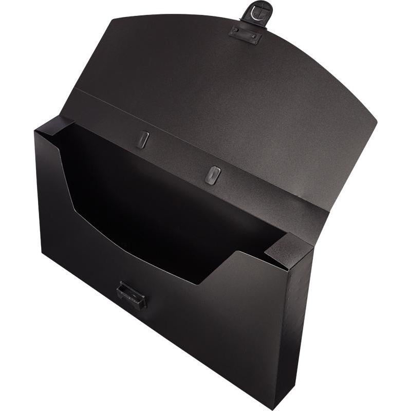 <p>Папка-портфель Attache для удобной переноски документов изготовлена из прочного пластика черного цвета. Ширина — 40 мм. Размеры — 250×40×370 мм, формат А4. Закрывается с помощью застежки-замка, есть ручка. Имеет 1 отделение.</p>