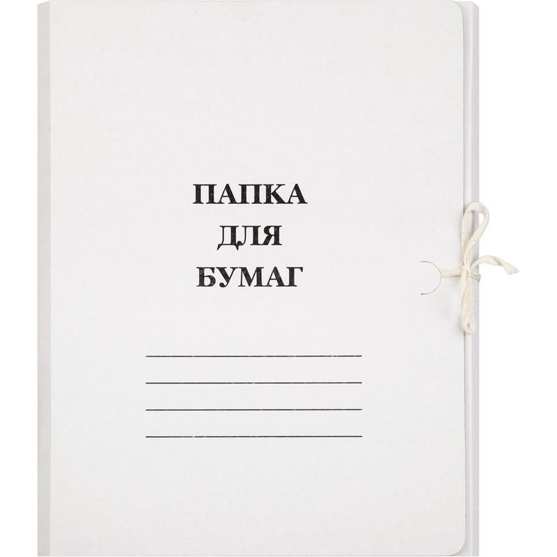 <p>Папка для бумаг формата А4 с завязками изготовлена из мелованного картона белого цвета (плотность 380 г/кв. м). На лицевой стороне есть поля для подписывания. Внутренние клапаны препятствуют выпадению документов. Папка картонная на завязках вмещает до 200 листов стандартной плотности. Размер изделия — 225×20×315 мм. Картон — экологически чистый и пригодный для переработки материал.<br>Папки могут поставляться с разным шрифтом.</p>