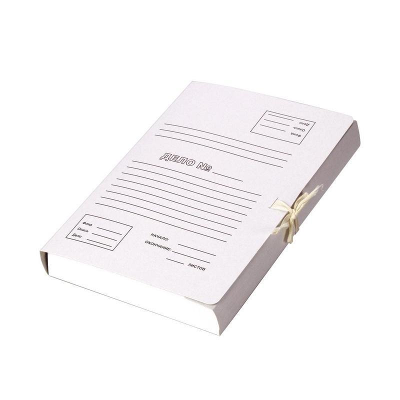 Папка для бумаг формата А4 с 2 завязками, упаковка из 10 штук. Изготовлены из немелованного картона белого цвета (плотность 380 г/кв. м), на лицевой стороне есть поля для подписывания. Вместимость — до 400 листов стандартной плотности. Папка картонная на завязках внутри оснащена тремя клапанами, благодаря которым документы не выпадают.<br> <br> Картон — экологически чистый и пригодный для переработки материал.<br> Папки могут поставляться с разным шрифтом.