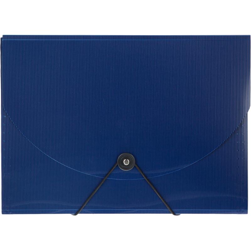 <p>Папка-картотека «Комус» формата А4 из полипропилена синего цвета выполнена в форме портфеля толщиной 35 мм. Имеет 12 прозрачных внутренних отделений для удобной сортировки и систематизации документов. Отделения оснащены ярлыками для маркировки. Папка закрывается на нижнюю резинку с круглым держателем.</p>