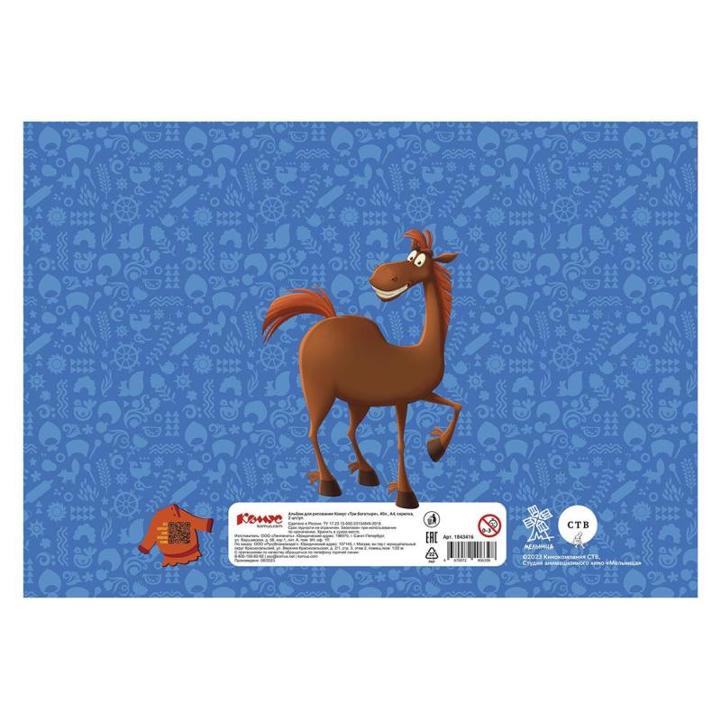 <p>Альбом Комус «Три богатыря» А4 формата, на скрепке. Внутренний блок — 40 листов, блок — бумага для рисования 100 г/кв.м. Яркая обложка. 2 штуки в упаковке.</p>