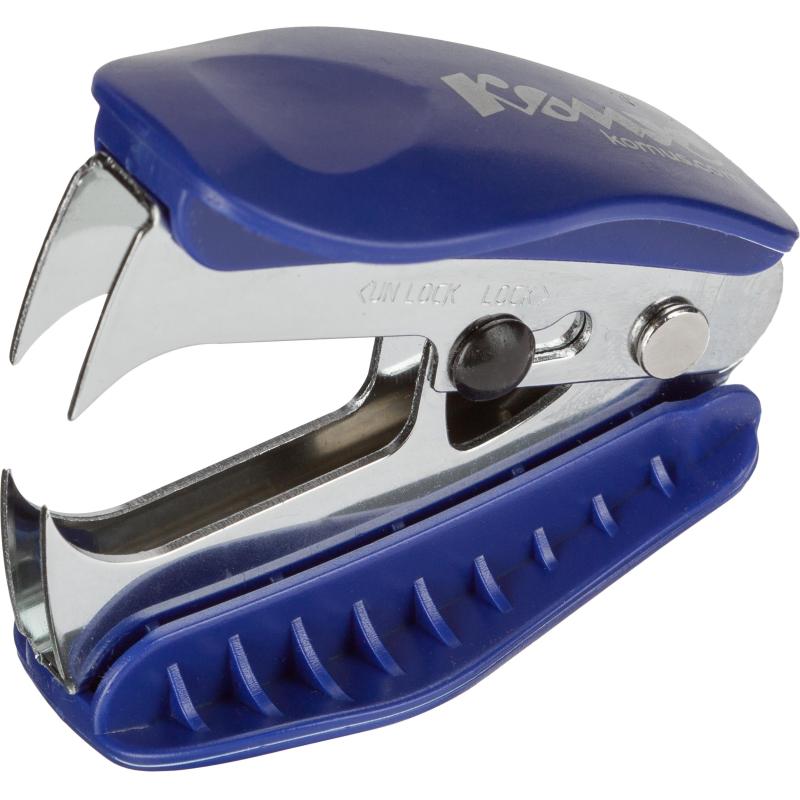 Антистеплер Комус предназначен для удаления скоб № 10, № 24/6 и № 26/6. Рабочий механизм антистеплера выполнен из высокопрочной стали, корпус — из высококачественного синего пластика, следы износа которого не будут заметны даже спустя многократное использование. Позволяет разжать закреплённые скобы более качественно, не нанося повреждений ни материалу, ни кончикам пальцев. Наличие фиксатора обеспечивает удобное хранение в закрытом положении. Размер изделия: 57.5×47 мм. Товар упакован в индивидуальную картонную коробочку.