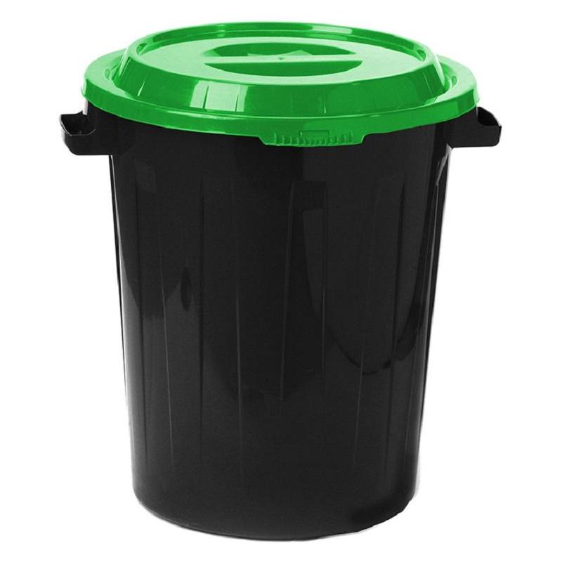 Бак для мусора и отходов 60 л с крышкой пластик чёрный/зелёный (55×48×48 см)<br><br>Бак 60 л предназначен для бытового использования. Произведён из пищевого пластика, подходит в качестве ёмкости для хранения питьевой воды; для хранения продуктов питания, фруктов, овощей. Бак устойчив и надёжен. Конструкция ручки и отсутствие режущих краёв удобны при переносе тяжестей. Плотно закрывающаяся крышка удобна для переноски и хранения.<br><br><b>Высота бака:</b> 55 см.<br><b>Диаметр:</b> 48 см.<br><b>Ширина с ручками:</b> 53 см.<br><b>Материал:</b> полипропилен (безопасный, пищевой, возможно использование при низких и высоких температурах: от −30 до 60°С).<br><b>Цвет:</b> чёрный/зелёный.<br><b>Вес:</b> 2.07 кг.<br><br>Внимание: в характеристике «Объём рекомендуемого мешка» указан минимальный объём мешка, который подойдёт для изделия. Рекомендуется приобретать мешки указанного, либо большего объёма.