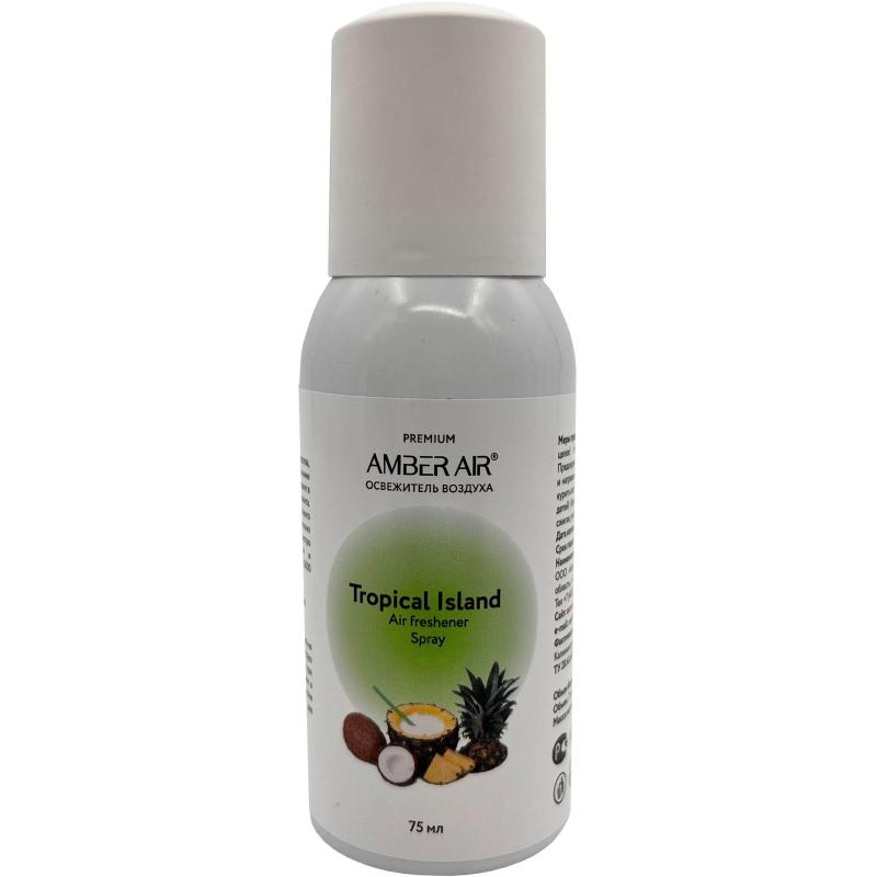 Баллон сменный для автоматического освежителя Amber Air Тропический остров 75 мл (00-00002255)<br><br>Назначение: эффективно и успешно контролируйте запах в туалетной комнате с аэрозольным освежителем воздуха Amber air. Аэрозоль содержит концентрированные ароматические масла и запатентованные нейтрализующие запах вещества, которые устраняют неприятные запахи и долго поддерживают в помещении свежесть. Высокая эффективность и стойкий аромат для контроля неприятных запахов! Аэрозоль предназначен для ароматизации воздуха внутри помещений площадью до 20 кв. м. Эффективное микрораспыление — свежесть в помещении до 90 дней. Программируемые режимы работы: выбор 8, 12, 16 и 24-часового режима работы 5-7 дней в неделю на 30, 60 или 90 дней. Объем баллона: 75 мл. Совместим с диспенсерами Tork А1. Способ применения: нажмите красную кнопку «reset» (I), удерживайте её нажатой не более 4 секунд (двойной аудиосигнал подтвердит, что перенастройка завершена). Важно: эту операцию необходимо производить каждый раз при замене аэрозольного картриджа. Если кнопка «reset» нажата более 5 секунд, диспенсер автоматически переходит в режим «демо» и возвращается к заданным производителем настройкам. Вставьте аэрозольный картридж и закройте крышку. Не стойте вплотную к распыляющему отверстию освежителя.<br>Меры предосторожности: огнеопасно! Легковоспламеняющиеся аэрозоли. Баллон находится под давлением: при нагревании может произойти взрыв. Беречь от тепла, искр, открытого огня, горячих поверхностей. Не направлять распылённую жидкость на открытое пламя или другие источники возгорания. Не протыкать и не сжигать, даже после использования. Беречь от солнечных лучей и не подвергать воздействию температур свыше 50°C. При контакте с кожей — немедленно промыть мылом и большим количеством воды. При попадании в глаза — незамедлительно промыть водой в течение длительного времени, держа веки широко разведёнными (минимум 15 минут). При проглатывании — прополоскать рот. При необходимости обратиться к врачу.<br>Состав: >15% отдушка <30%, диметиловый спирт >30%, функциональные добавки <5%.<br>Условия хранения: хранить плотно закрытым в сухом, прохладном и хорошо проветриваемом месте. Держать вдали от источников возгорания. Не курить. Держать вдали от источников тепла/искр/открытого пламени/горячих поверхностей. Сосуд под давлением. Хранение при повышенной температуре может вызвать повышение давления в плотно закрытых ёмкостях. Предохранять от прямого солнечного излучения. Хранить отдельно от окислителей, сильнощелочных и сильно кислых материалов. Хранить в недоступном для детей месте, предохранять от воздействия прямых солнечных лучей и нагревания выше 50°C.<br>Срок годности: 36 месяцев с даты изготовления (дату изготовления см. на упаковке).