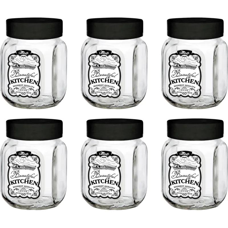 Банка для хранения Квестор стеклянная 900 мл (6 штук в упаковке) <br><br>Банка для хранения объёмом 900 мл с чёрной металлической крышкой — это стильное и практичное решение для организации ваших продуктов. Изготовленная из высококачественного стекла, она идеально подходит для хранения различных сыпучих продуктов и специй. <br>Преимущества: <br>1. Элегантный дизайн: квадратная форма с скруглёнными гранями придаёт банке современный и стильный вид, что делает её отличным дополнением к любой кухне. <br>2. Нескользящее основание: специально разработанное дно с текстурированным покрытием предотвращает скольжение, обеспечивая надёжную стабильность на любой поверхности. <br>3. Лёгкость в уходе: гладкая поверхность банки позволяет легко мыть её, что делает уход за ней быстрым и беспроблемным. <br>Эта банка станет незаменимым помощником на вашей кухне, идеально подходя для хранения муки, сахара, круп и других продуктов.<br>Высота банки: 15.8 см.