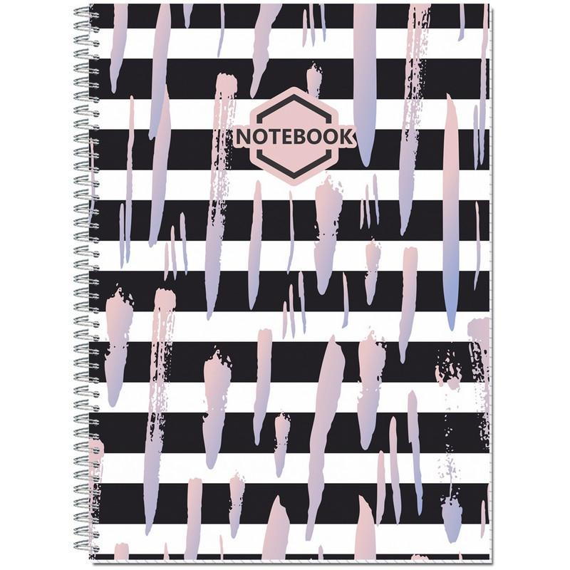 Бизнес-тетрадь Полином Стильный офис формата А4 предназначена для офисных и учебных записей. Размер изделия составляет 203×290 мм, размер листа — 20.4×29.1 см. Внутренний блок содержит 120 листов, что соответствует 240 страницам. Блок выполнен из белой офсетной бумаги плотностью 60 г/кв. м с белизной 100%. Бумага разлинована в клетку без полей, цвет линовки — серый. Цвет обреза — белый. Крепление расположено слева и выполнено в виде металлического гребня, что обеспечивает удобное перелистывание страниц и надёжную фиксацию блока.<br><br>Мягкая однотонная обложка изготовлена из мелованного картона плотностью 190 г/кв. м и имеет отделку ВД-лаком. Цвет и дизайн обложки представлены в ассортименте. Обложка с рисунком защищает внутренний блок от загрязнений и механических воздействий при повседневном использовании. Бизнес-тетрадь произведена в России.