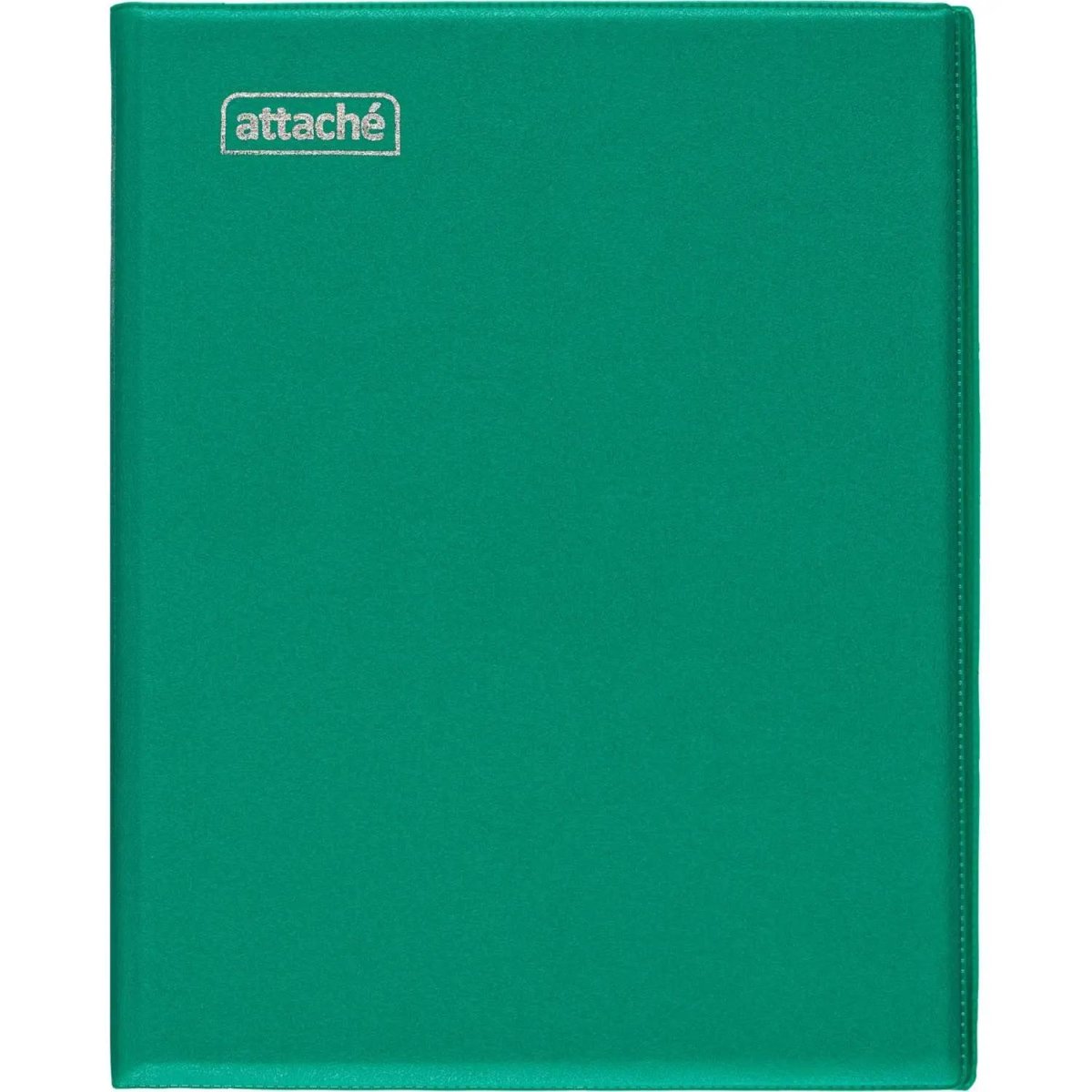 Бизнес-тетрадь Attache А5 160 листов зелёная в клетку, тиснение фольгой<br><br>Бизнес-тетрадь на кольцах формата А5 изготовлена из переплётного картона толщиной 1.5 мм, обтянутого ПВХ плёнкой зелёного цвета с тиснением фольгой логотипа Attache. Тетрадь оснащена кольцевым механизмом на 4 кольца, что позволяет удобно добавлять и удалять страницы, а также увеличивать количество листов благодаря оптимальному диаметру колец. Перфорации нет.<br><br>Внутренний блок состоит из 160 листов белой офсетной бумаги плотностью 60 г/кв.м, разлинованных в клетку. Листы не имеют полей. Цвет линовки — синий, что делает записи более чёткими и удобными. Тетрадь идеально подходит для учёбы, работы или ведения личных записей. Возможность нанесения логотипа и тиснения позволяет персонализировать тетрадь для корпоративных нужд.
