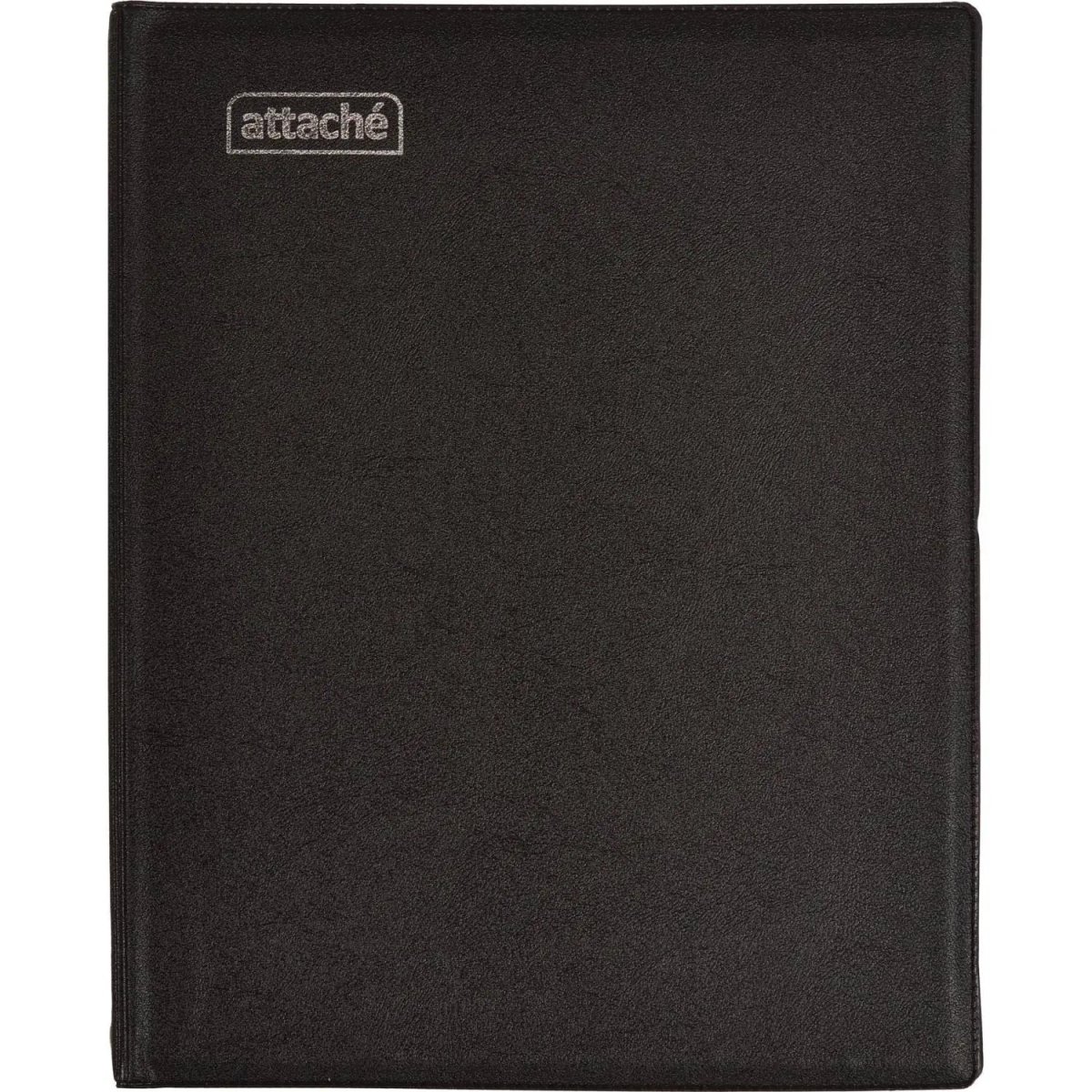 Бизнес-тетрадь Attache А5 160 листов чёрная в клетку, тиснение фольгой<br><br>Бизнес-тетрадь на кольцах формата А5 изготовлена из переплётного картона толщиной 1.5 мм, обтянутого ПВХ-пленкой чёрного цвета, с тиснением фольгой логотипа Attache. Тетрадь оснащена кольцевым механизмом на 4 кольца, что позволяет легко добавлять или удалять страницы по мере необходимости. Диаметр колец позволяет увеличить количество листов, обеспечивая дополнительное пространство для записей. Перфорации нет.<br><br>Внутренний блок состоит из 160 листов белой офсетной бумаги плотностью 60 г/кв.м, разлинованных в клетку. Листы не имеют полей. Цвет линовки — синий, что позволяет чётко и удобно записывать информацию. Возможность нанесения логотипа и тиснения позволяет адаптировать тетрадь под корпоративные нужды.