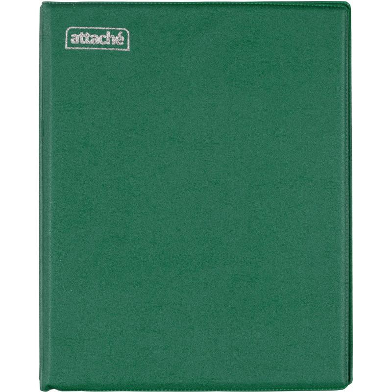 Бизнес-тетрадь Attache А5 240 листов зелёная в клетку, тиснение фольгой<br><br>Бизнес-тетрадь на кольцах формата А5 изготовлена из переплётного картона толщиной 1.5 мм, обтянутого ПВХ плёнкой зелёного цвета с тиснением фольгой логотипа Attache. Тетрадь оснащена кольцевым механизмом на 4 кольца с диаметром колец 30 мм, что позволяет добавлять дополнительные листы и увеличивать объём тетради по мере необходимости. Перфорации нет.<br><br>Внутренний блок состоит из 240 листов белой офсетной бумаги плотностью 60 г/кв.м, разлинованных в клетку без полей. Листы имеют синий цвет линовки, что делает записи чёткими и удобными для работы и учёбы. Возможность нанесения логотипа и тиснения позволяет персонализировать тетрадь для корпоративных нужд.