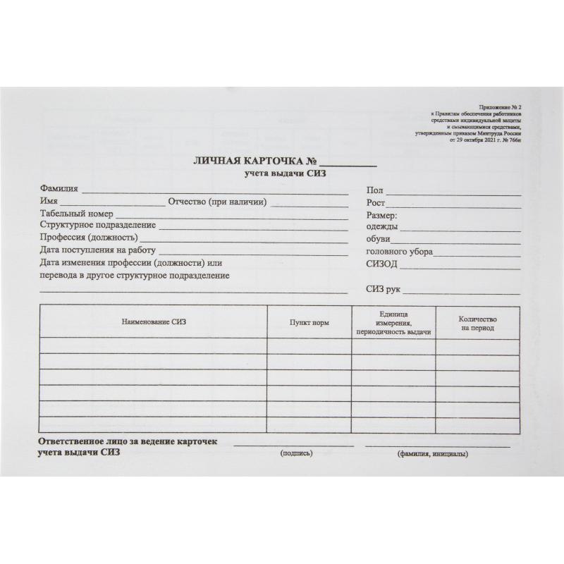 Карточка учета СИЗ предназначена для фиксации учета выдачи и сдачи работникам СИЗ. Бланки Attache отпечатаны на офсетной бумаге 120 г/кв.м, формата А5. В комплекте 50 штук. Упакованы в термоусадочную пленку.
