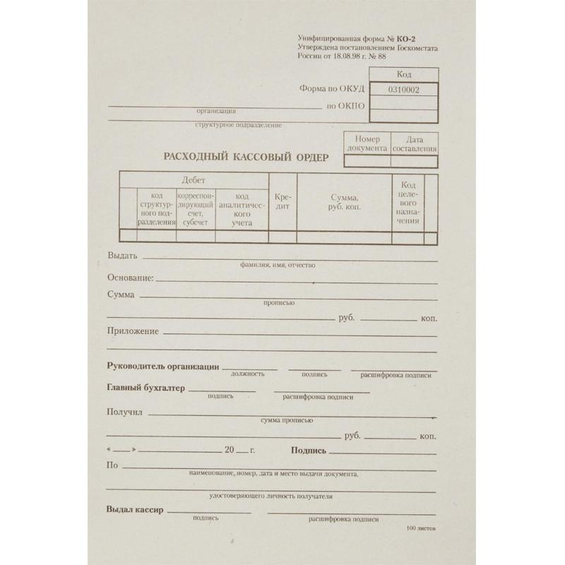 Бухгалтерские бланки — расходный кассовый ордер, унифицированная форма КО-2. Применяются для учета и оформления кассовых операций на предприятии. Бланки Attache отпечатаны на газетной бумаге формата А5, склеены по 100 штук в виде книжки. В комплекте 20 книжек (упакованы в крафт-бумагу).<br><br>Отсчет и запаковка бланков осуществляются на автоматическом оборудовании. В связи с этим, согласно имеющимся допускам оборудования, погрешность в количестве бланков в упаковке может составлять ±3%.
