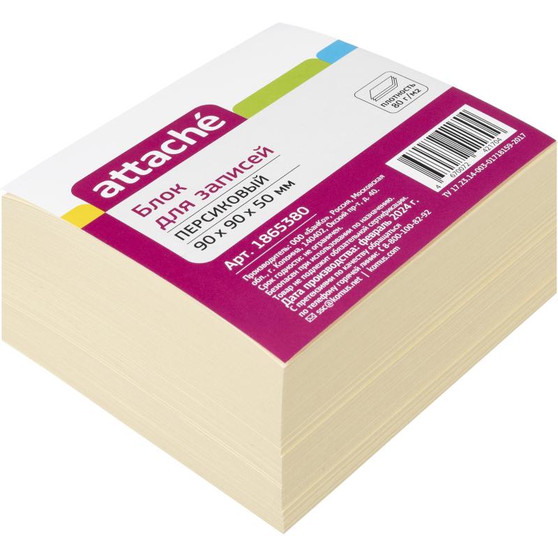 Блок для записей Attache предназначен для работы в офисе или дома. Будет полезен в использовании для рабочих процессов и повседневных задач, а также при проведении совещаний, обучений, мозговых штурмов. Идеально подходит для работников офиса.<br><br>Блок высотой 5 см сложен из квадратных листов размером 9×9 см. Листы не склеены между собой. Листы изготовлены из высококачественной офсетной бумаги плотностью 80 г/м2. В блоке представлены листы персикового цвета. Блок для записей подходит для письма любыми типами ручек и карандашей. Благодаря высокой плотности листы не продавливаются при нажатии. Поставляется в термоусадочной пленке, защищающей блок при транспортировке. Для повышения удобства рекомендуется использование в пластиковых подставках и настольных органайзерах.