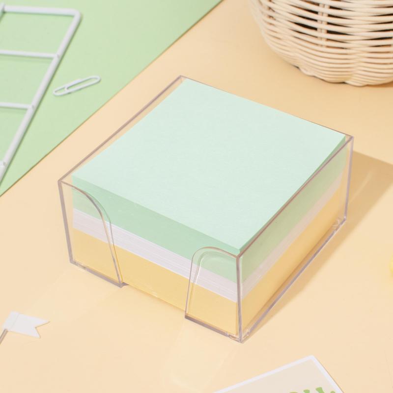 Блок для записей «Комус» размером 90×90×50 мм выполнен из высококачественной цветной офсетной бумаги плотностью 80 г/кв.м. Прозрачный пластиковый бокс, в который вложен блок, обеспечивает удобство использования и порядок на рабочем столе. Поставляется упакованным в термоусадочную пленку. Цвета — в ассортименте.
