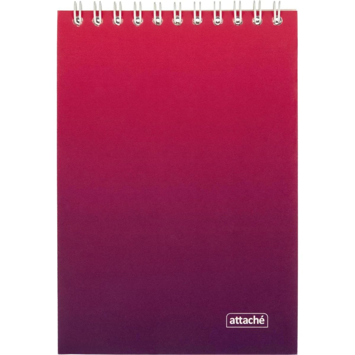 Блокнот Attache Градиент изготовлен форматом А6 (146×102 мм). Обложка и подложка изготовлены из мелованного картона 190-210 г/м2. Блок-офсетная бумага 60г/м2, разлинованная в клетку. Количество листов в блоке-60. Блокнот скреплен металлическим гребнем (спиралью) по короткой стороне сверху. Применяется в школах, высших учебных заведениях и офисах.