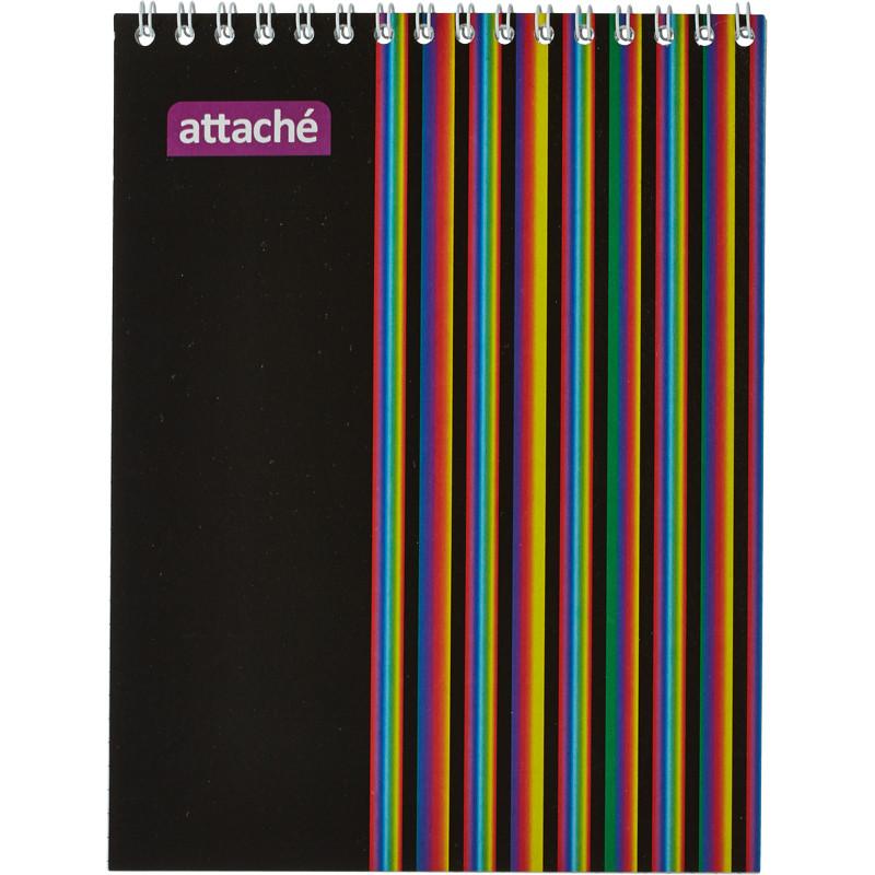 Блокнот Attache Офис формата A5 предназначен для повседневных записей и заметок. Размер листа составляет 14×19.5 см, что удобно для использования в офисе, на учёбе и в дороге.<br><br>Мягкая обложка выполнена из картона и оформлена в чёрном цвете с рисунком. Поверхность обложки покрыта ВД-лаком, что повышает её устойчивость к истиранию. Крепление расположено сверху и выполнено на спирали, что обеспечивает удобное перелистывание страниц.<br><br>Внутренний блок состоит из 40 листов офсетной бумаги плотностью 60 г/кв. м. Бумага белого цвета разлинована в клетку синего цвета и подходит для записей ручкой и карандашом. Цвет обреза — белый. Блокнот произведён в России и поставляется по 1 штуке.
