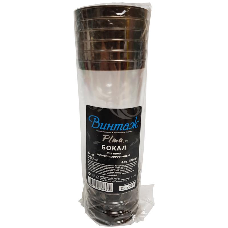 <p><b>Бокал одноразовый для вина Винтаж пластиковый прозрачный 200 мл 6 штук в упаковке</b></br>Бокал пластиковый прозрачный предназначен для холодных и горячих напитков (до 70°С). Не допускать контактов с открытым огнем, нагревательными приборами и агрессивными средами. Срок годности не ограничен. Объём 200 мл. 6 штук в упаковке, 56 упаковок в коробе.</br></br>Верхний диаметр: 68 мм.</br>Нижний диаметр: 50 мм.</br>Высота: 120 мм.</p>