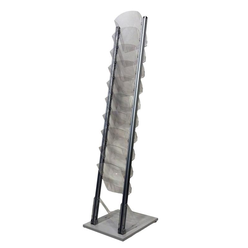 <p>Разборный информационный напольный стенд «Комус» предназначен для хранения печатной продукции формата А4. Изготовлен из алюминиевого профиля серебристого цвета. Основание — ДСП толщиной 1,6 см, цвет белый матовый. Стенд оснащен десятью карманами формата А4 из прозрачного пластика. Каждый карман шириной 22 см имеет расширение 3 см. Поставляется в разобранном виде с инструкцией по сборке. Размер (ДxШxВ) — 360×490×1542 мм.</p>