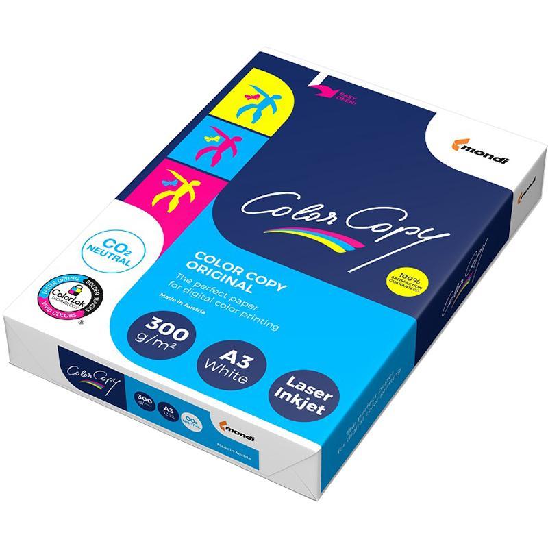 Бумага для цветной лазерной печати Color Copy формата А3 предназначена для печати на монохромных и цветных лазерных принтерах, на цветных копировальных аппаратах и на цифровых печатных устройствах. Плотность бумаги составляет 300 г/кв.м, толщина — 305 мкм, высокая степень белизны — 161%. Поверхность гладкая, с однородной структурой. Пачка бумаги содержит 125 листов. Превосходный визуальный эффект с яркими и точными цветами обязательно привлечёт внимание к Вашим материалам. Вы можете достичь всего этого с Color Copy, благодаря широчайшей цветовой гамме на цветной лазерной печати. С Color Copy можно добиться передачи натуральных оттенков кожи и воспроизведения всей палитры цветов, даже таких сложных как жёлтый/зелёный. Высочайший цветовой охват достигается сбалансированными и оптимизированными свойствами бумаги. Специальная обработка поверхности Color Copy в сочетании с её гладкостью гарантирует чёткость цветовоспроизведения в самом широком спектре. Предназначена для односторонней и двусторонней печати.<br>Дополнительные преимущества:<br>— обработанная особым способом поверхность позволяет отлично закрепляться тонеру;<br>— беспроблемная обработка бумаги в печатной машине;<br>— одобрена ведущими производителями печатной техники.<br>Cтрана-производитель: Австрия.