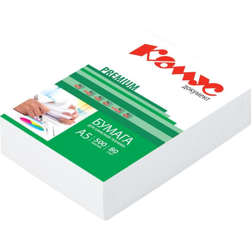 Бумага офисная Комус Документ Premium (А5, марка А, 80 г/кв.м, 500 листов)<br><br>Бумага высшей категории качества Комус Документ Premium формата А5 предназначена для всех видов печатных работ на любой марке офисной техники. Высокая белизна бумаги позволяет добиться качественной цветной и черно-белой печати на струйных принтерах. Отличный результат при двусторонней и высокоскоростной печати. Изготовлено по ТУ 17.12.14-001-5032139-2023 из сырья сертифицированного для архивного хранения ГОСТ Р ИСО 9706-2000, а также по стандарту ГОСТ Р 57641-2017 «Бумага ксерографическая для офисной техники».<br>Страна-производитель — Россия.<br><b>Запомните три простых правила:</b> <br>1. Хранить бумагу в сухом месте.<br>2. Распушить стопку бумаги перед загрузкой в принтер.<br>3. Открывать пачку бумаги непосредственно перед использованием.