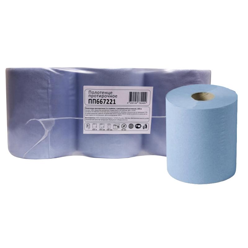 Бумага протирочная в рулоне с центральной вытяжкой W2/W1/M4/M2 667 листов 22×30 см голубая 2-слойная (6 штук в упаковке)<br><br>Протирочная бумага 2-слойная в рулонах с центральной вытяжкой предназначена для удаления загрязнений в быту, на производстве, станциях технического обслуживания, пищевых производствах.
