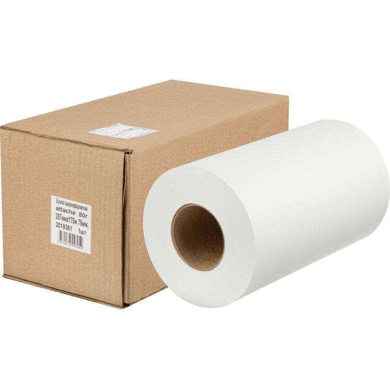 Широкоформатная бумага Attache 80 г, предназначенная для печати технической документации, монохромных материалов ГИС и САПР, инженерной и деловой графики. Используется на широкоформатных ксерографических инженерных системах Xerox, KIP, Seiko, OCE, Riсoh, Kyocera Mitа. Бумажное полотно белизной (138%) имеет формат A1 (297 мм). Оптимальная плотность, составляющая 80 г/кв.м, исключает просвечивание изображения. Бумага поставляется в рулонах по 175 м, упакованных в картонную коробку.<br />
