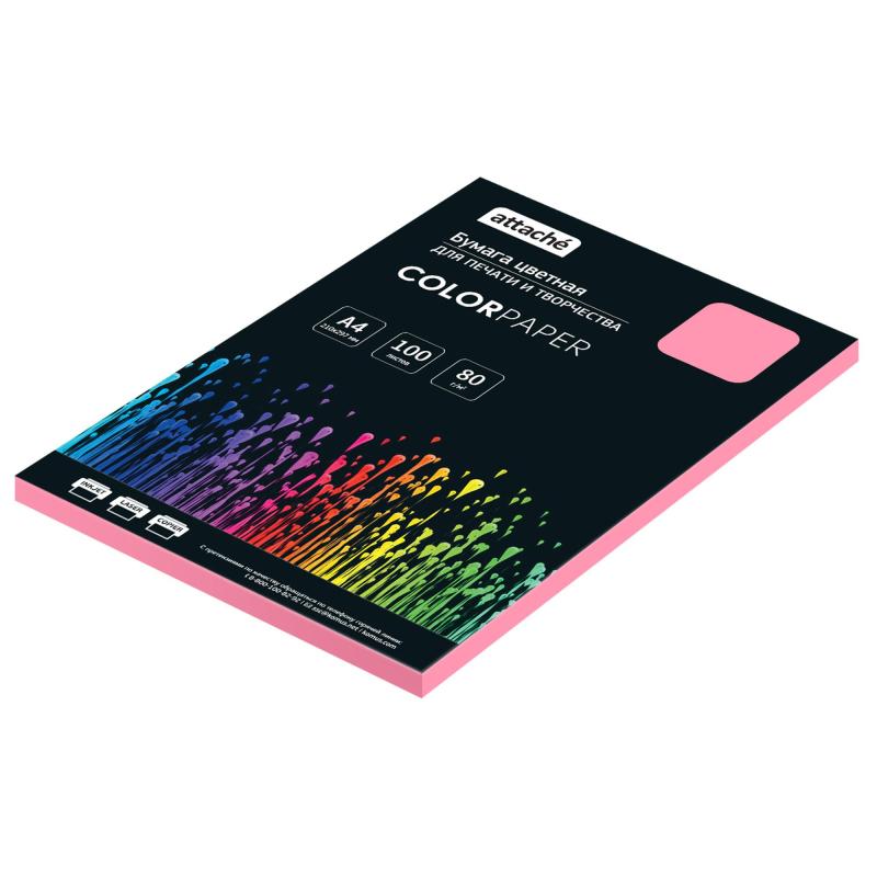 Бумага цветная Attache пастельного розового цвета применяется для печати на всех видах принтеров. Одна пачка содержит 100 листов формата А4, плотность которых составляет 80 г/кв.м. Страна производства: Китай.<br><br>Цветопередача монитора может искажать реальный цвет продукта.