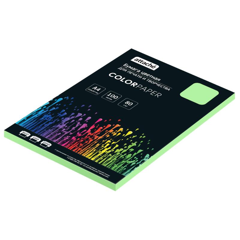 Бумага цветная Attache пастельного зелёного цвета предназначена для печати на всех видах принтеров. Одна пачка содержит 100 листов формата А4, плотность которых составляет 80 г/кв.м. Страна производства: Китай.<br><br>Цветопередача монитора может искажать реальный цвет продукта.