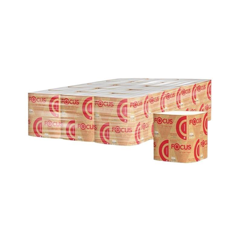 Бумага туалетная листовая Focus Premium 2-слойная 15 пачек по 250 листов. <br>Туалетная бумага Focus V-сложения размещается в компактном диспенсере, который подойдет под любой интерьер. Листовая подача туалетной бумаги поможет лучше контролировать расход и обеспечит максимальную гигиеничность: бумага выдается поштучно, что исключает соприкосновение рук со следующим листом. Листовая туалетная бумага — рациональное решение для мест с высокими требованиями к чистоте и гигиене. Упакованная в полиэтиленовый короб бумажная продукция подвержена меньшему влиянию окружающих факторов при транспортировке.<br>Изготовлена из первичного сырья. <br>Поставляется упаковками по 15 пачек.
