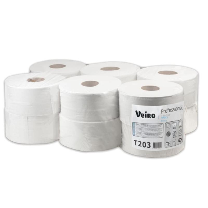 <p>Бумага туалетная в рулонах Veiro Q2 Comfort<nobr>2-слойная</nobr> 12 рулонов по 200 метров (артикул производителя Т203).<br> Подходит для использования в местах со средней и высокой проходимостью, таких как ресторан, офис, торговый центр, аэропорт, <nobr>ж/д</nobr> вокзал <nobr>и т. д.</nobr> Линия Veiro Professional Comfort — продукция для ежедневного применения. 1600 листов в рулоне. Цвет белый. Изготовлена из вторичного сырья.<br> Размер: длина рулона 200 м, ширина рулона 9,5 см, диаметр рулона 19 см, диаметр втулки 6 см.</p>