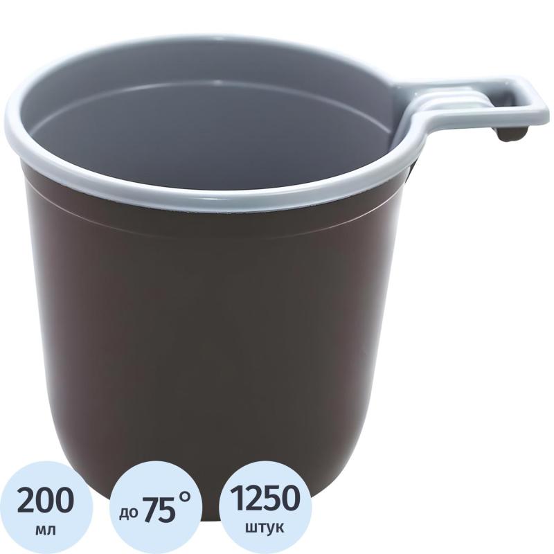 Чашка одноразовая пластиковая 200/250 мл коричневая/белая (1250 штук в упаковке)<br><br>Данные чашки изготовлены из полипропилена и предназначены для горячих и холодных напитков.<br>В коробе 1250 штук.<br>Полный объём: 250 мл, рабочий объём: 200 мл.<br><br>Внимание! Товар поставляется в транспортном коробе (короба могут отличаться по форме и размеру).