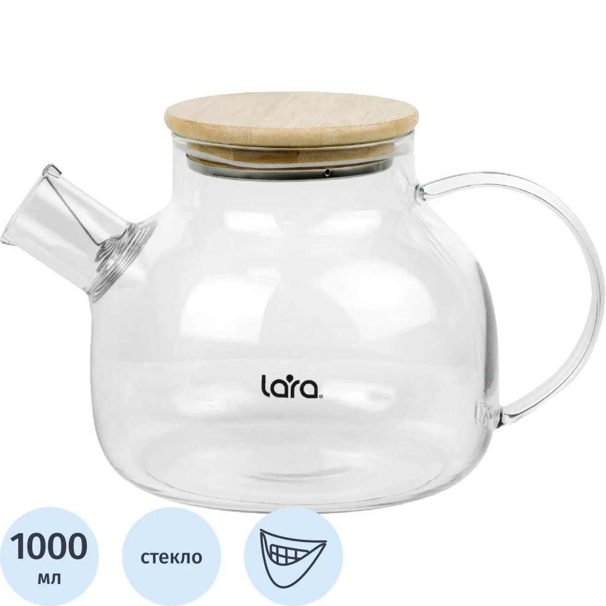 Заварочный чайник LARA LR06-21 — идеальное решение для приготовления различных сортов чая. При изготовлении были использованы только экологически чистые материалы. Колба чайника выполнена из высококачественного термостойкого боросиликатного стекла, способного выдерживать перепады температур. Также стекло не впитывает запахи и сохраняет оригинальный вкус и аромат напитка. Бамбуковая крышка со стальной внутренней отделкой оснащена силиконовой вставкой для надёжной фиксации. Эргономичная не нагревающаяся ручка для комфортного и надёжного удержания чайника. Чайник удобен в использовании, а также его легко мыть благодаря съёмному фильтру. <br><br>Стильный чайник украсит кухонное пространство. Объёма изделия достаточно для семьи или небольшой компании друзей. Наслаждайтесь любимыми напитками вместе с посудой Lara.