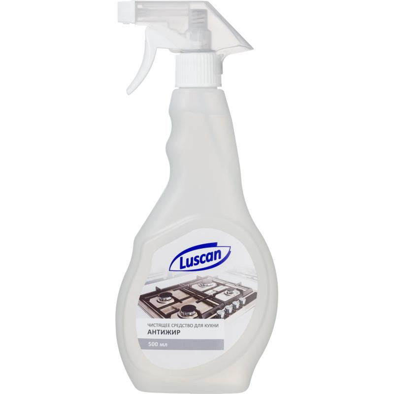 <br><br>Чистящее средство (жироудалитель) для кухни Luscan Антижир 0.5 л от жира и нагара спрей для стеклокерамики <br><br><b>Назначение.</b> Чистящее средство предназначено для удаления жировых и иных загрязнений с кухонных поверхностей — с кухонной техники, газовых и электроплит, грилей, СВЧ-печей, духовых шкафов, кухонных моек и воздухоочистителей. Средство эффективно даже в труднодоступных местах.<br><b>Способ применения.</b> Повернуть насадку распылителя в положение ’Spray’. Равномерно распылить средство с расстояния 15-20 см на очищаемую поверхность (в случае сильного загрязнения оставить на 1-3 мин). Удалить грязь губкой или мягкой щёткой, ополоснуть водой и вытереть насухо. Повернуть насадку распылителя в положение ’Off’.<br><b>Меры предосторожности.</b> Осторожно! При попадании в глаза вызывает раздражение, может вызвать слабое раздражение кожи! Использовать только по назначению! Хранить отдельно от пищевых продуктов, в недоступном для детей месте. Не вдыхать при распылении. После работы тщательно вымыть руки. Избегать попадания средства в глаза и на кожу. При попадании средства на кожу немедленно промыть большим количеством воды. При попадании средства в глаза немедленно промыть их чистой проточной водой. При необходимости обратиться к врачу.<br><b>Состав.</b> 30% вода, 5% этиленгликоль, 5% НПАВ, 5% цитрат натрия, 5% парфюмерная композиция (в т. ч. лимонен), 5% консервант.<br><b>Условия хранения.</b> Хранить при температуре не ниже −20 °С и не выше до 50 °С. Средство замерзает, после полного размораживания и интенсивного встряхивания восстанавливает свои свойства.<br><b>Срок годности.</b> 30 месяцев. Дата изготовления и номер партии указаны на флаконе. По истечении срока годности средство и флакон утилизируют как бытовой отход.