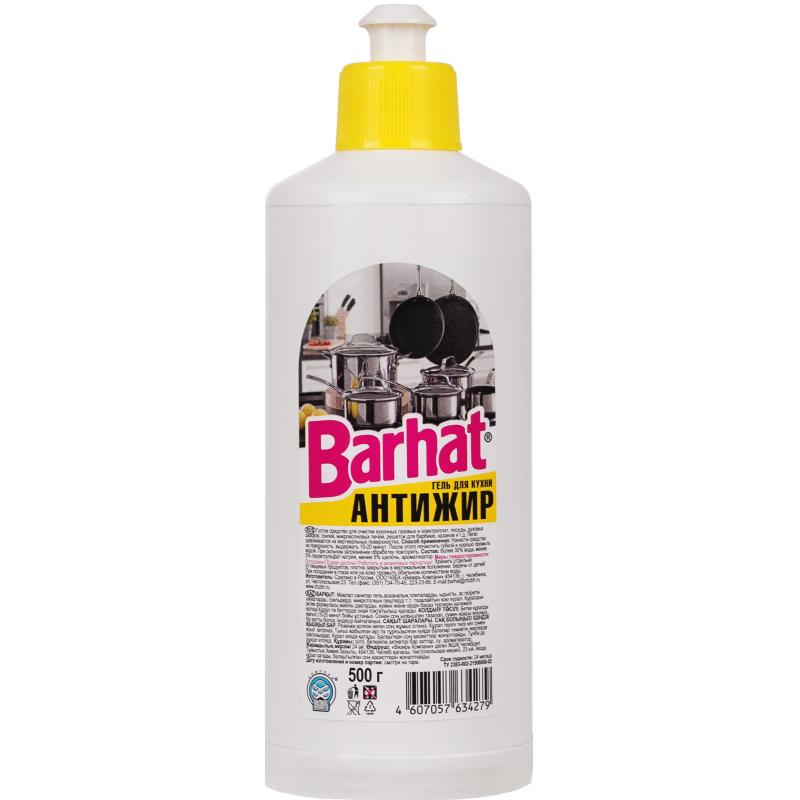 Чистящее средство (жироудалитель) для кухни Бархат Антижир 0.5 кг от жира и нагара гель для стеклокерамики<br><br><b>Назначение.</b> Густое средство для очистки кухонных газовых и электроплит, посуды, духовых шкафов, грилей, микроволновых печей, решёток для барбекю, казанов и т. д. Легко удерживается на вертикальных поверхностях.<br><b>Способ применения.</b> Нанести средство на поверхность, выдержать 15-20 минут. После этого почистить губкой и хорошо промыть водой. При сильном загрязнении обработку повторить.<br><b>Меры предосторожности.</b> Осторожно! Едкая щёлочь! Работать в резиновых перчатках! Перед использованием проверить стойкость покрытий в незаметном месте. Не использовать для чистки нарушенных пластиковых и тефлоновых покрытий, изделий из алюминия, а также окрашенных поверхностей.<br><b>Условия хранения.</b> хранить отдельно от пищевых продуктов, плотно закрытым в вертикальном положении. Беречь от детей! При попадании в глаза или на кожу промыть обильном количеством воды.<br><b>Состав.</b> Вода <30%,смесь кислот <5%, но <15%, НПАВ <5%, ароматизирующий компонент.<br><b>Срок годности.</b> 24 месяца с даты изготовления (дату изготовления см. на упаковке).</b></b>