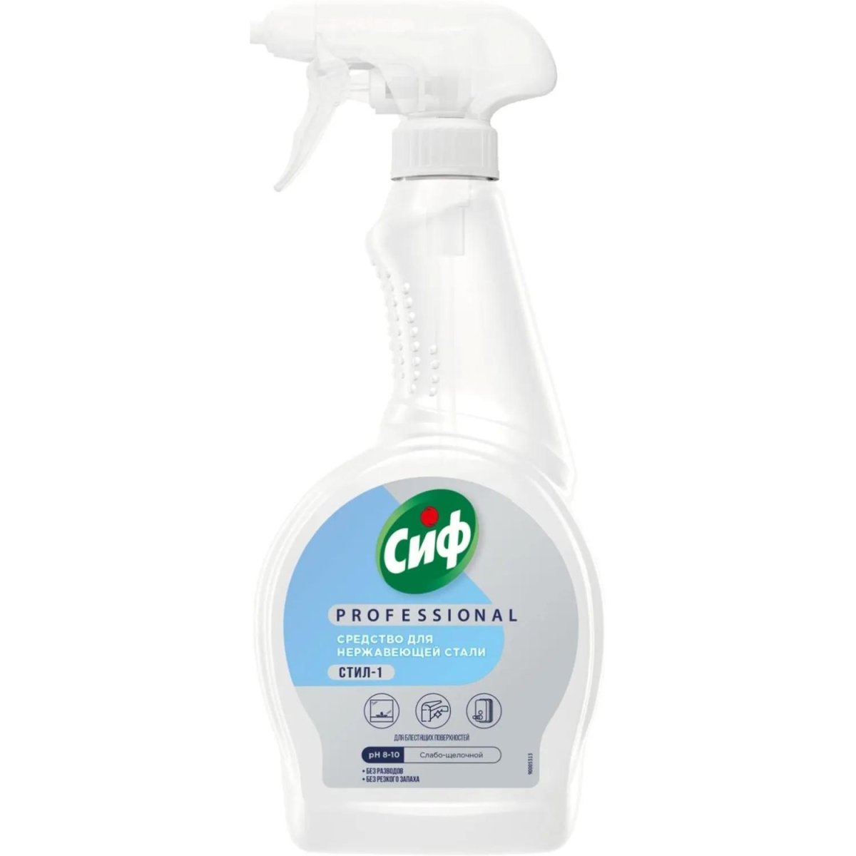 <b>Назначение:</b> чистящее средство Сиф Professional СТИЛ-1 предназначено для мытья окон, зеркал, блестящих поверхностей, средство эффективно устраняет грязь, пыль, налет, разводы, пятна от воды и отпечатки пальцев.<br><b>Способ применения:</b> распылите спрей на поверхность, оставьте на несколько секунд, протрите тряпкой/сгоном. При необходимости повторите.<br><b>Меры предосторожности:</b> перед использованием на незнакомых поверхностях сначала попробовать средство на небольшом незаметном участке. Перед использованием ознакомиться с маркировкой продукта. Избегайте вдыхания спрея, попадания в глаза и длительного контакта с чувствительной или поврежденной кожей. После работы тщательно вымыть руки. При попадании в глаза: Осторожно промыть глаза водой в течение нескольких минут. Если раздражение не проходит, обратиться за медицинской помощью, по возможности показать маркировку продукта. Использовать только в хорошо вентилируемом помещении. Хранить в недоступном для детей и домашних животных месте.<br><b>Состав:</b> 5-15% изопропиловый спирт, < 5% анионные ПАВ, < 5% отдушка, < 5% консерванты, <5% гераниол (ароматический компонент), краситель.<br><b>Условия хранения:</b> хранить в плотно закрытой упаковке изготовителя в сухих крытых помещениях при положительных температурах не выше +30°С, отдельно от лекарственных препаратов, пищевых продуктов, в местах, недоступных детям и домашним животным.<br><b>Срок годности:</b> 36.5 месяца с даты изготовления (дату изготовления см. на упаковке).
