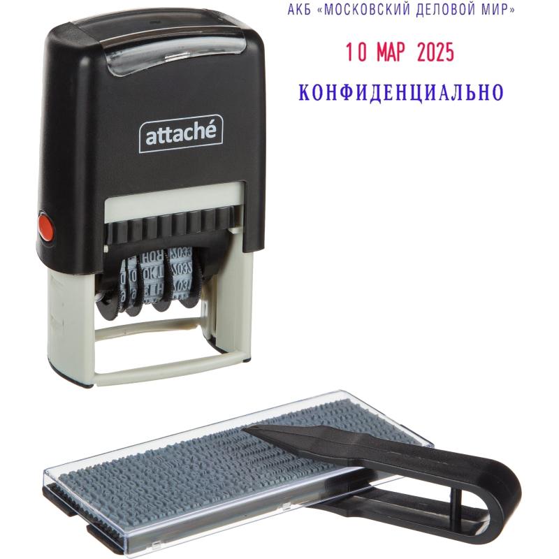 Датер автоматический самонаборный Attache предназначен для самостоятельного создания и изменения текста оттиска. Материал корпуса: пластик. Максимальное количество строк: 2. Размер шрифта: 4 мм. Легкая и чистая замена штемпельной подушки. Размер оттиска: 42×26 мм. Свободное поле: нет.