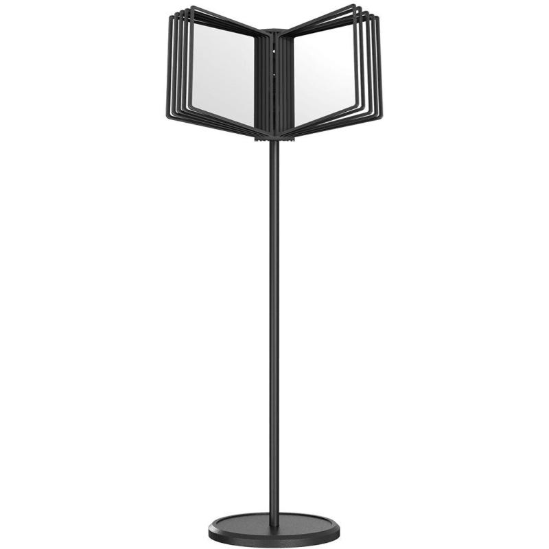 Демосистема напольная А4 10 панелей черная Attache<br><br>Демосистема напольная с десятью рамками формата А4 чёрного цвета. Основание выполнено из композитного материала, устойчиво в использовании. Угол наклона легко изменить с помощью регулирующего механизма на модуле для рамок. Вы можете использовать как вертикально, так и с удобным для клиентов углом наклона. Собрать стойку не составит труда. Данная демосистема впишется в любой офисный интерьер, кафе, арт-пространство, общеобразовательное и государственное учреждение, магазин.<br><br>В рамках ребрендинга производится перевод данного артикула с ТМ Pro Mega на ТМ Attache с сохранением всех потребительских характеристик товара. На переходный период допускается поставка данной продукции в двух вариантах дизайна.