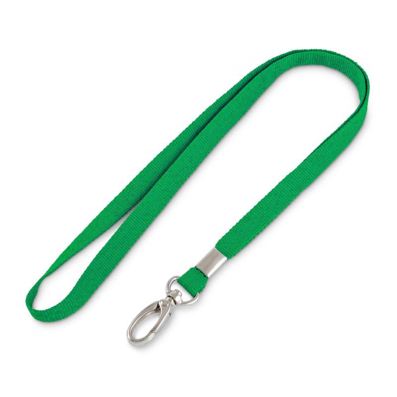 <p>Лента для бейджа зеленого цвета с <nobr>карабином-клешней</nobr>. Лента изготовлена из репсового материала. Длина — 90 см, ширина — 10 мм. Используется для фиксации бейджа или пропуска.</p>
