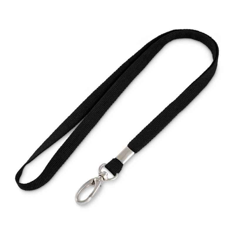 <p>Лента для бейджа черного цвета с <nobr>карабином-клешней</nobr>. Лента изготовлена из репсового материала. Длина — 90 см, ширина — 10 мм. Используется для фиксации бейджа или пропуска.</p>