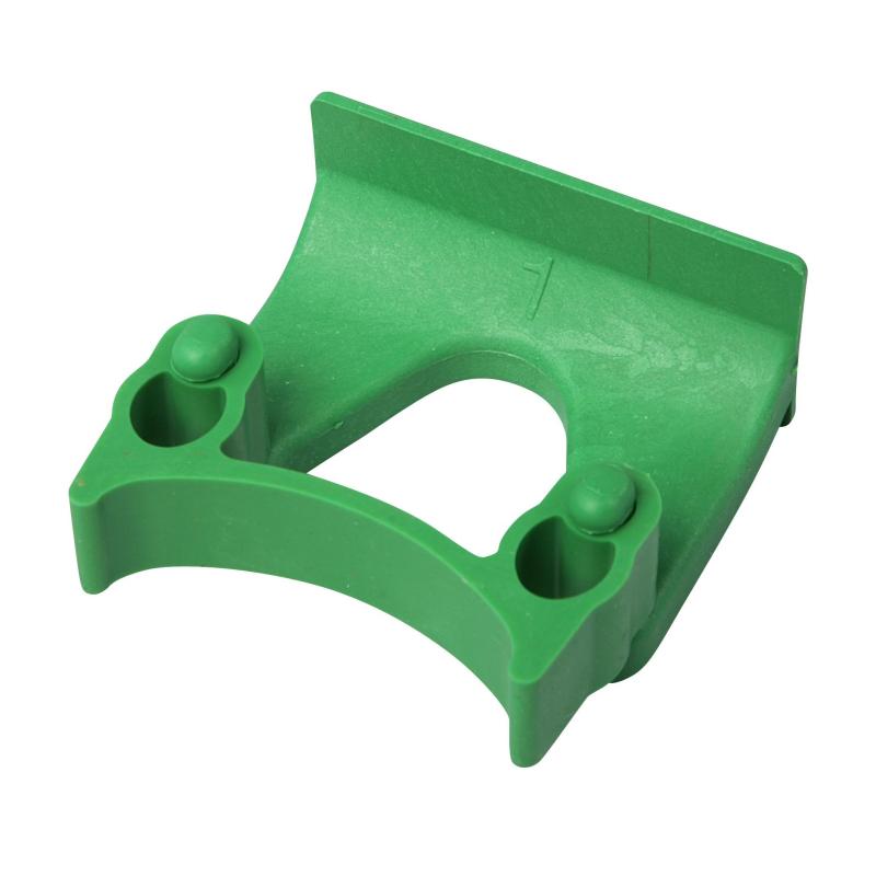 <b>Держатель для инвентаря настенный FBK полипропилен зеленый (длина 85 мм).</b><BR>Держатель для инвентаря FBK, для рукоятки d 25–35 мм, полностью зеленого цвета.<BR>Помогает бережно и упорядоченно хранить инвентарь на системе настенного хранения.<BR>Имеет специальные борта для вставления в алюминиевый рейлинг. Работает исключительно с рейлингом для зажимов.<BR>Соответствует требованиям ХАССП.<BR>Выдерживает температуры от -20 °С до 134 °С.<BR>Допустимо автоклавирование при температуре 134 °С.<BR>Химстойкий.<BR>Материал: полипропилен.<BR>Размеры: 85×60×35 мм.<BR>Вес: 0,042 кг.