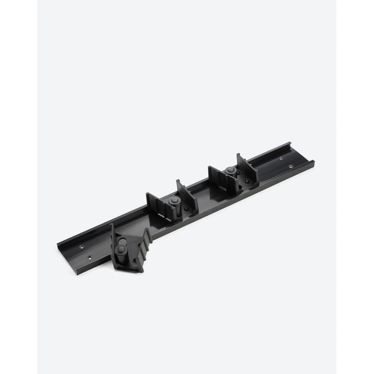 Держатель инвентаря SYR настенный 45×7 см чёрный<br><br>Компактный держатель с 3 роликами-зажимами предназначен для хранения уборочного инвентаря.<br>— Изготовлен из ударопрочного пластика, устойчивого к механическим, обеспечивает долговечность при интенсивной эксплуатации.<br>— Крепится к стене с помощью саморезов (входят в комплект).<br>— Конструкция ролика-зажима разработана таким образом, что позволяет закреплять ручки разного диаметра (прорезиненный ролик перемещается сверху-вниз по наклонной направляющей и надёжно фиксирует ручку).<br>— Держатель обеспечивает удобное размещение инвентаря и поддержание порядка в зоне хранения.<br>— Дополнительные ролики можно приобрести отдельно.<br><br>Продукт сертифицирован для применения на пищевых производствах.