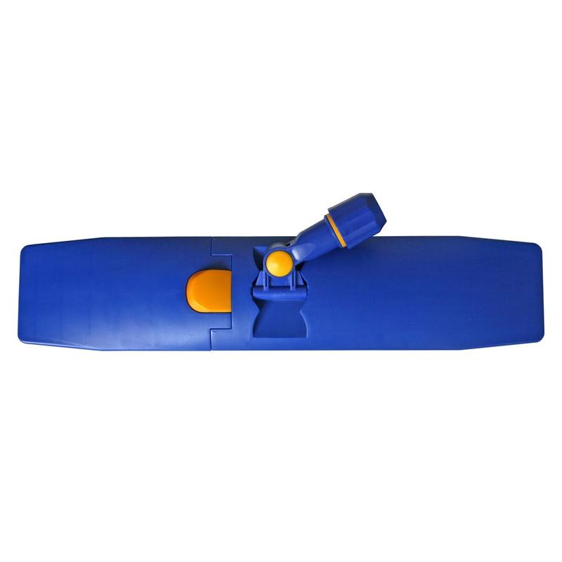 Держатель МОПа изготовлен из пластика и предназначен для уборки полов. Конструкция снабжена защёлкой-фикcатором: при необходимости сложить флаундер для отжима или замены МОПа достаточно нажать на педаль ногой. После этого держатель фиксируется в рабочем положении при опускании на пол и нажатии на ручку.<br><br>Модель рассчитана на использование с насадками с карманами. Рабочая часть имеет размер 50×10 см. Конструкция складная, оснащена шарнирным соединением, обеспечивающим поворот на 90 градусов для удобной уборки в труднодоступных местах. Цвет — синий. Производитель — Китай.