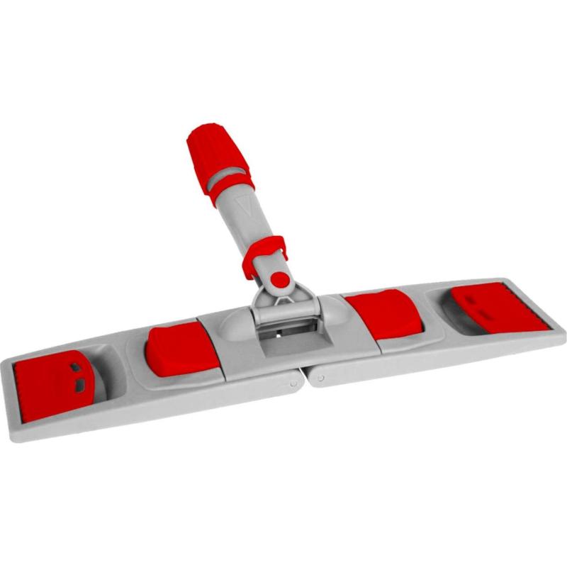 Держатель МОПа Luscan Professional — складной плоский флаундер, предназначенный для влажной уборки. Изготовлен из износостойкого и ударопрочного полипропилена, который выдерживает интенсивные нагрузки и воздействие агрессивных моющих средств.<br><br>Конструкция оснащена двумя педалями для удобного складывания и шарнирным соединением, обеспечивающим плотный контакт МОПа с поверхностью и свободу движений. Это позволяет эффективно убирать не только открытые площади, но и труднодоступные зоны: под полками, стеллажами и мебелью.<br><br>Держатель совместим с насадками, имеющими крепление «карман» или «ухо». Рукоятка фиксируется универсально — кольцевым Э-зажимом или резьбовым соединением (диаметр 23 мм).<br><br>Цвет изделия — серый/красный. Размер рабочей части — 40×11 см, вес — 350 г. Держатель имеет цветовую кодировку по стандарту ХАССП, что снижает риск перекрёстного загрязнения. Страна производства — Турция. Материал — пластик.