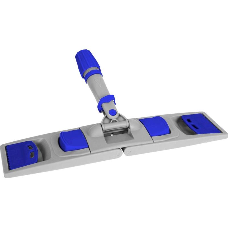 Держатель МОПа Luscan Professional — универсальный складной флаундер для влажной уборки больших площадей. Изготовлен из прочного и износостойкого полипропилена, устойчивого к нагрузкам и воздействию агрессивных моющих средств.<br><br>Держатель оснащён двумя педалями для удобного складывания и шарнирным соединением, которое обеспечивает плотный контакт МОПа с поверхностью и лёгкое управление при работе. Благодаря этому можно убирать даже в труднодоступных местах: под мебелью, витринами или стеллажами.<br><br>Совместим с насадками, имеющими крепления «карман» и «ухо». Рукоятка фиксируется универсально — через кольцевой Э-зажим или резьбовое соединение (диаметр 23 мм).<br><br>Размер рабочей части — 50×11 см, вес — 425 г. Цвет — серый/синий. Наличие цветовой кодировки соответствует стандарту ХАССП и предотвращает риск перекрёстного загрязнения. Страна производства — Турция. Материал — пластик.