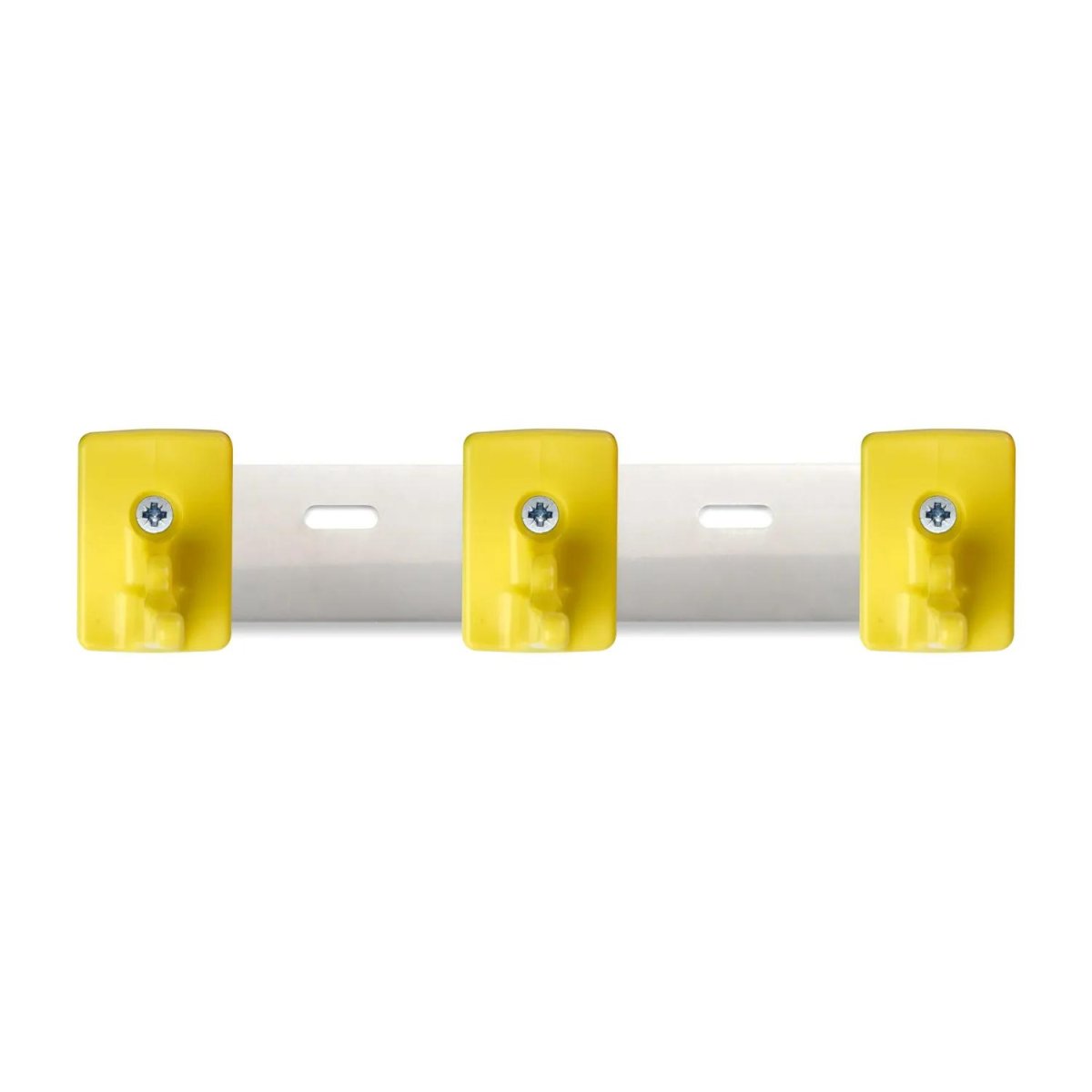 Держатель настенный предназначен для хранения производственного и уборочного инвентаря, инструментов. <BR>Размер держателя с крючками (ДхШ): 192×77 мм. <BR>Вес: 167 г.<BR>Цвет: желтый/металлик.<BR>Максимальная нагрузка на 1 крючок: 10 кг. <BR>В комплект входит 3 крючка, крепежный набор. Возможно доукомплектование дополнительным набором крючков для хранения 5 предметов. Гигиеничен, легко моется, изготовлен из материалов, устойчивых к агрессивным моющим растворам — нержавеющей стали, полипропилена. Подходит для пищевых производств, HoReCa, клининга.