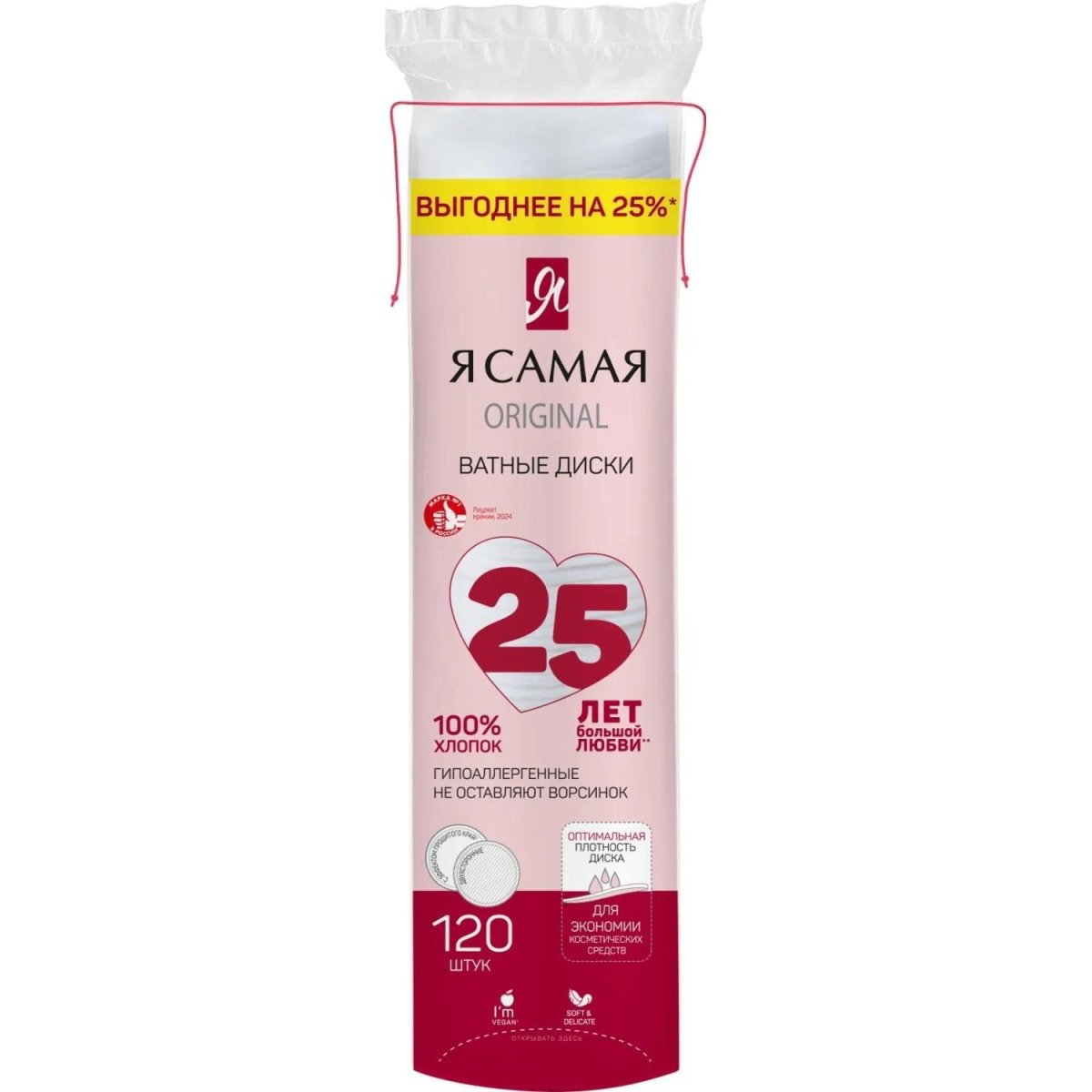 Диски ватные Я Самая Original подходят для использования на шее и лице. В состав входит 100% хлопок, обладающий высокой впитываемостью, эффективно удаляющий излишки косметических средств. Ватные диски являются двусторонними: одна сторона гладкая для нанесения уходовых средств, другая с тиснением — для эффективного удаления макияжа. Не оставляет ворсинок. Удобный формат упаковки с верёвочками.
